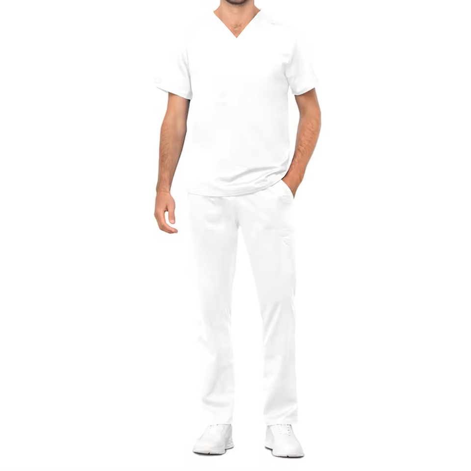 ชุดเครื่องแบบคอวีผ้าโพลีเอสเตอร์ผ้าฝ้ายสีขาวระบายอากาศได้ดีเหมาะสำหรับทั้งชายและหญิงชุดยูนิฟอร์มกำหนดเองได้ฤดูร้อน