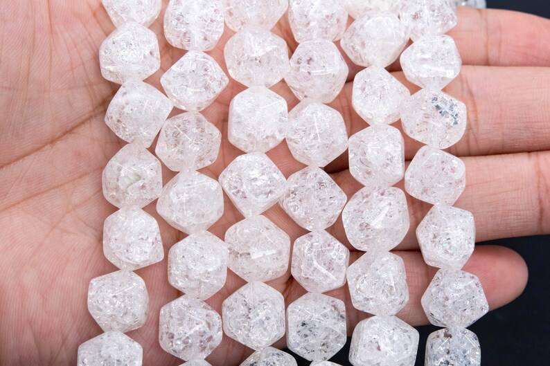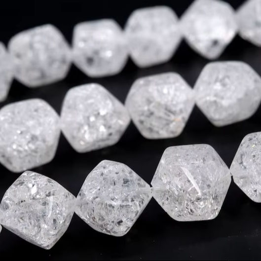 ลูกปัดควอตซ์คริสตัลสีขาวลายแตกทรงเหลี่ยม ลูกปัดแท้ธรรมชาติแบบเต็มเส้น ขนาด 15.5 นิ้ว จำนวนมาก