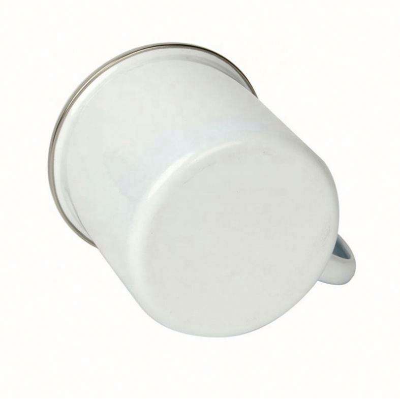 แก้วกาแฟเคลือบเหล็กพร้อมขอบสแตนเลสสีขาวพิมพ์ซับลิเมชันแบบกำหนดเอง