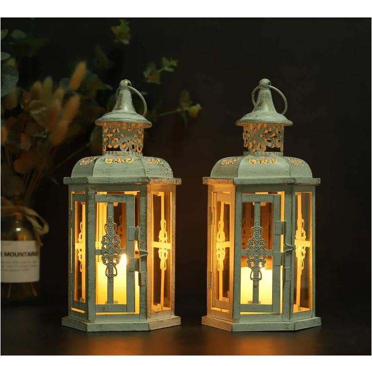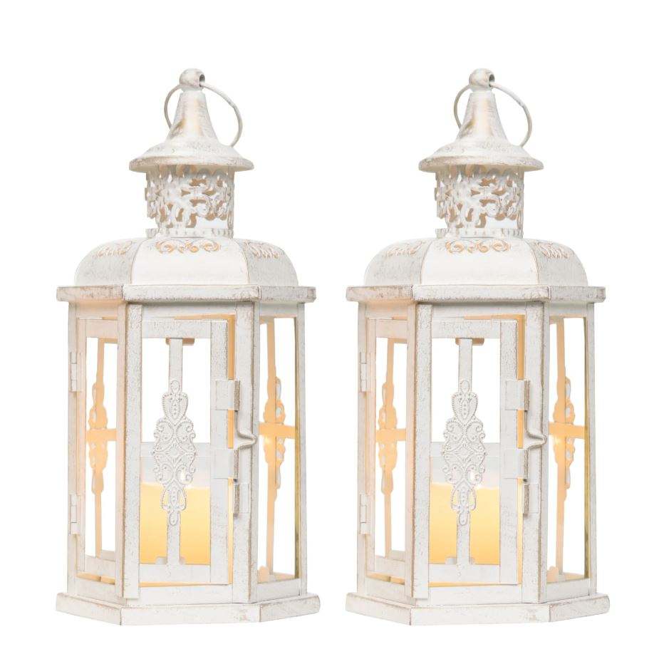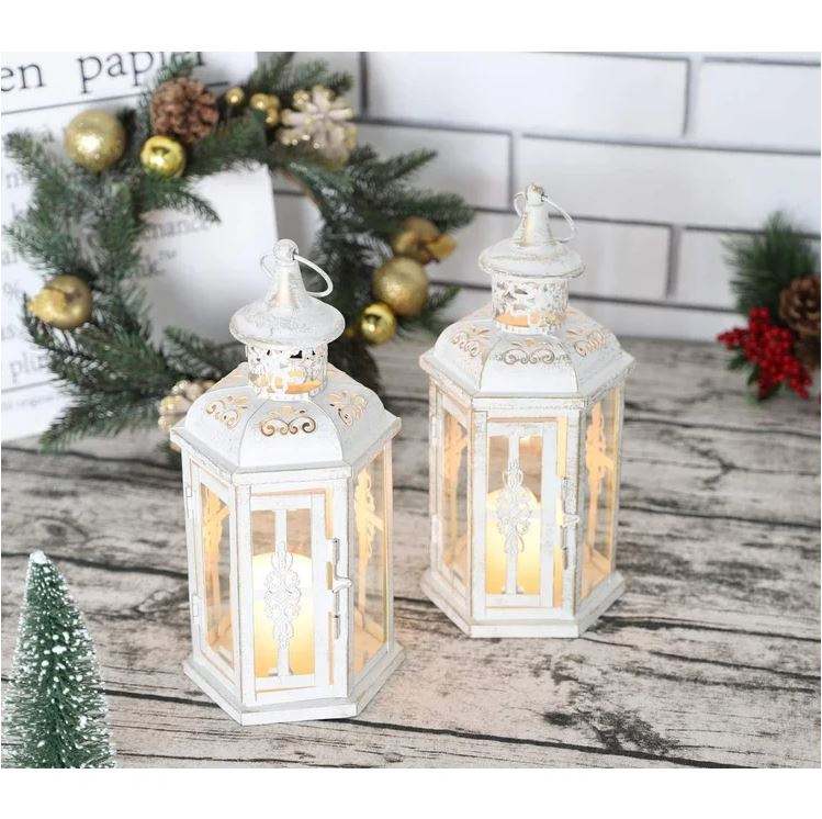 เชิงเทียนโคมไฟแขวนโลหะตกแต่งสีขาว