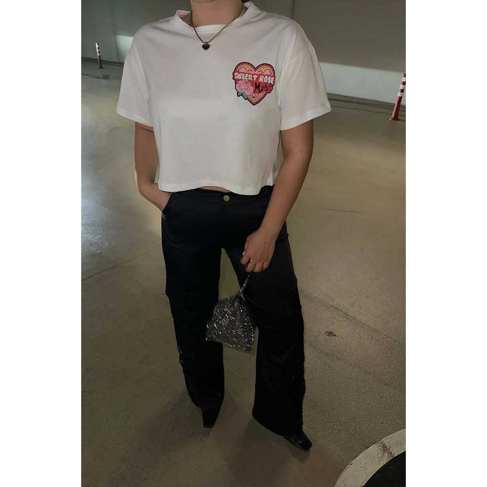 เสื้อครอปท็อปผู้หญิงพิมพ์ลายไวท์เดสเซิร์ทโรส เสื้อกล้ามถักเนื้อผ้าระบายอากาศ สไตล์เซ็กซี่ลำลอง ไซส์เดียว เสื้อผ้าสั้น