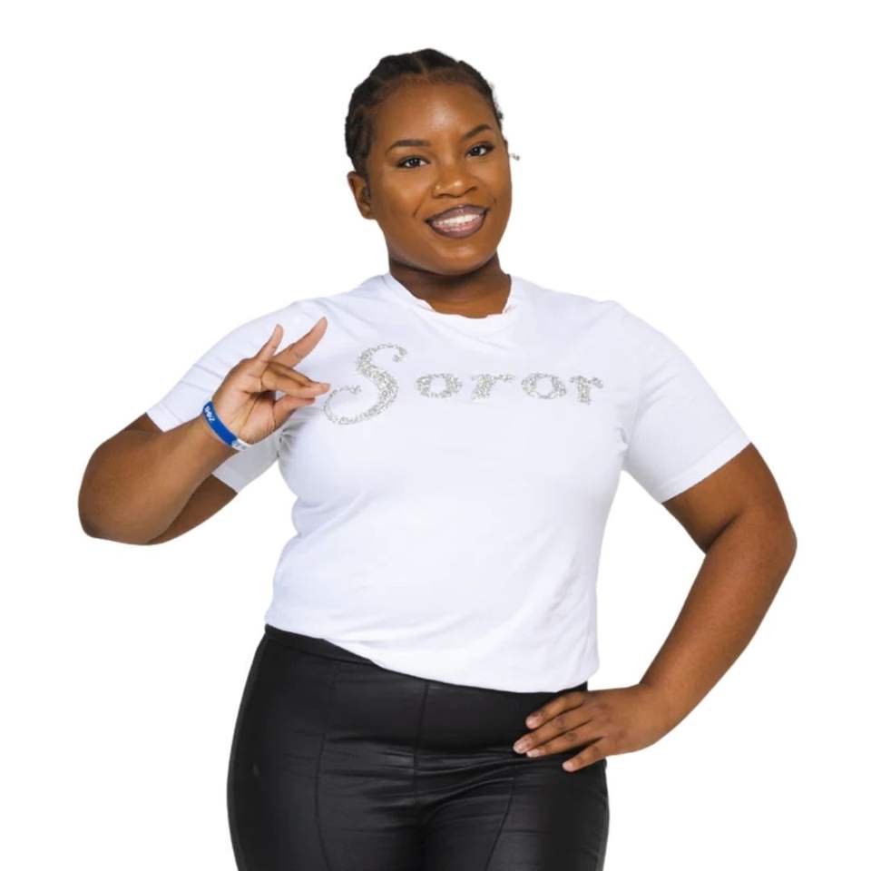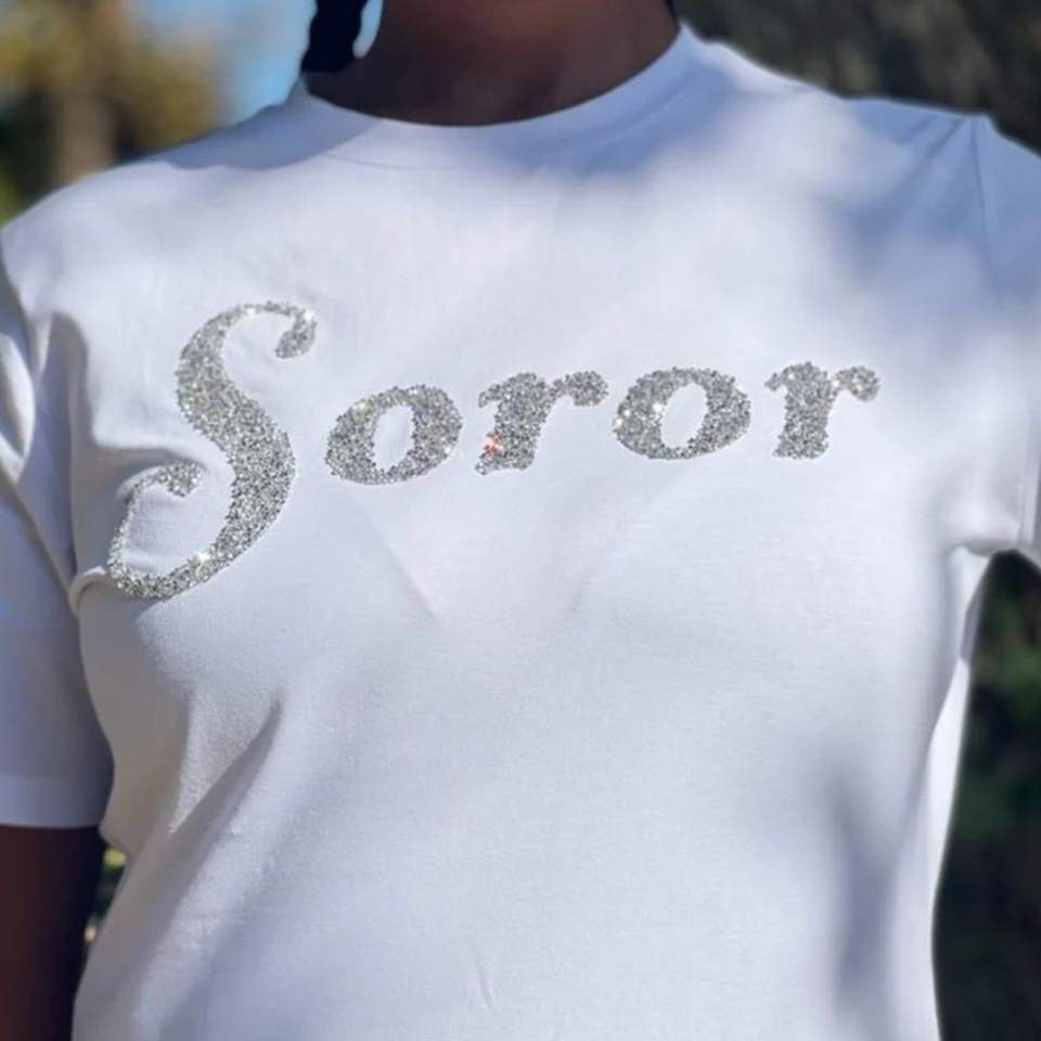 White Diamond Soror Shirt Women 100 Cotton Sequin Embroidered Greek Letters Sorority Apparel Classic Fit for Zeta Phi Beta Pride