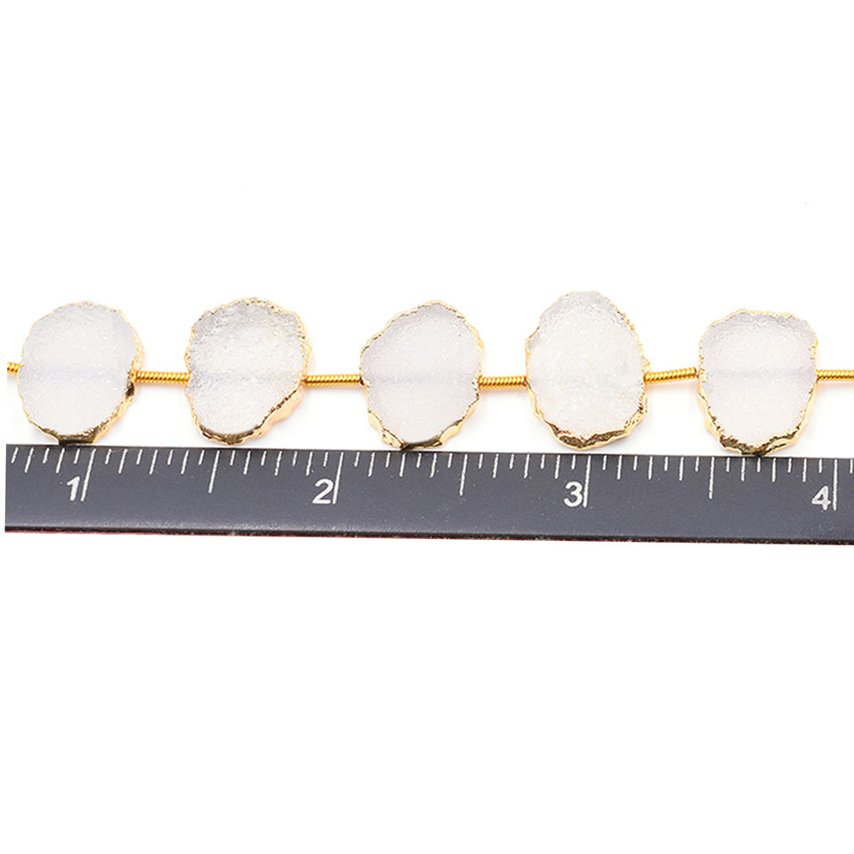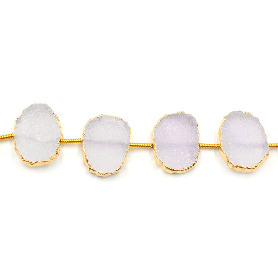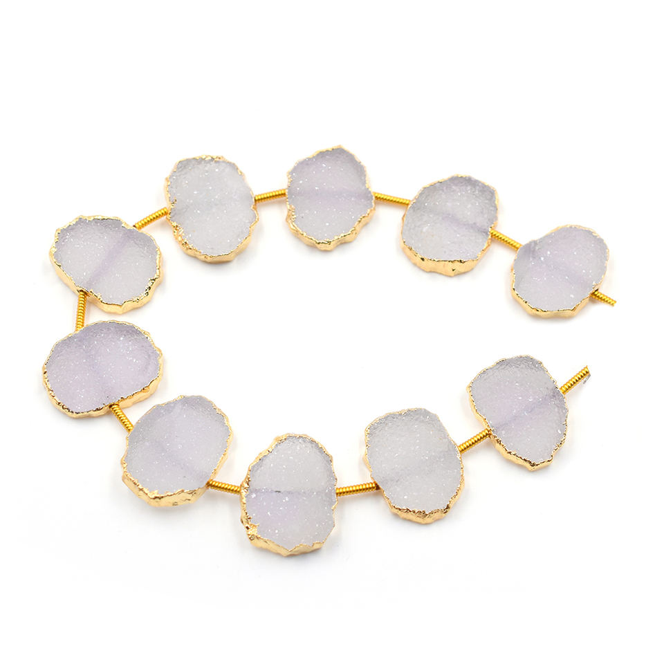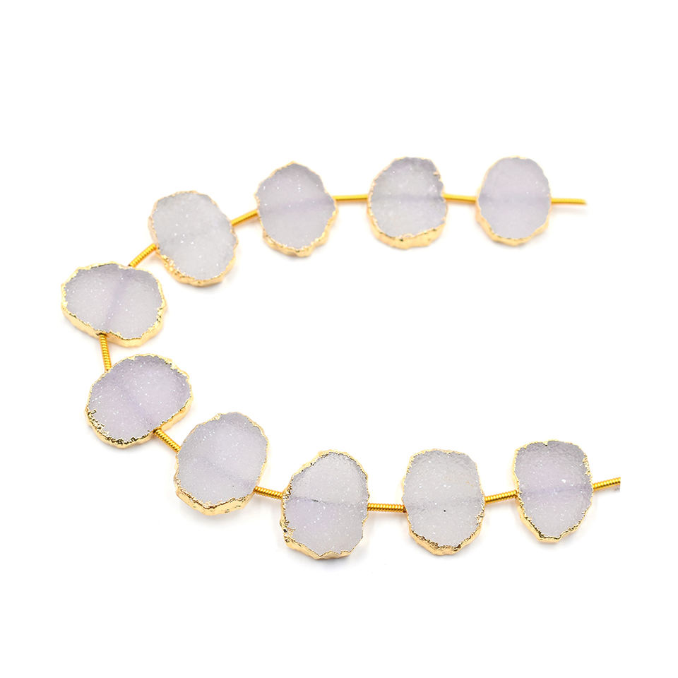 ชื่อสินค้า:ลูกปัดหินดรูซี่สีขาวเจาะรูตรง ชุบทอง 10 เม็ดต่อเส้น