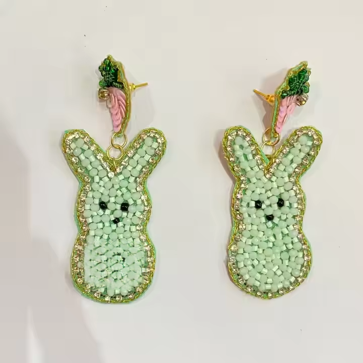 ต่างหูลูกปัดกระต่ายอีสเตอร์สีขาวสำหรับผู้หญิงเครื่องประดับห้อยกระต่ายแบบแฮนด์เมดสไตล์คลาสสิกสำหรับสวมใส่ในวันหยุด