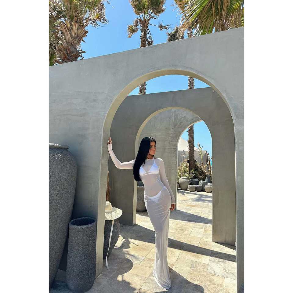 ชุดคลุมชายหาดผ้าทูลล์สีขาวสไตล์ชิคสำหรับใส่คลุมชุดว่ายน้ำ