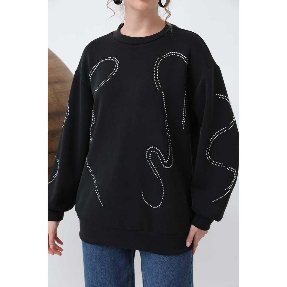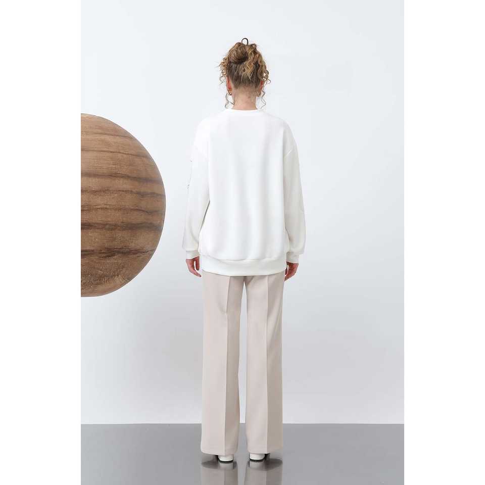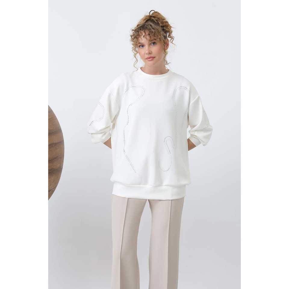 เสื้อสเวตเชิ้ตผู้หญิงสีขาวประดับด้วยคริสตัล แขนเสื้อแบบปกติ ผ้าถัก รุ่น 32117SWT