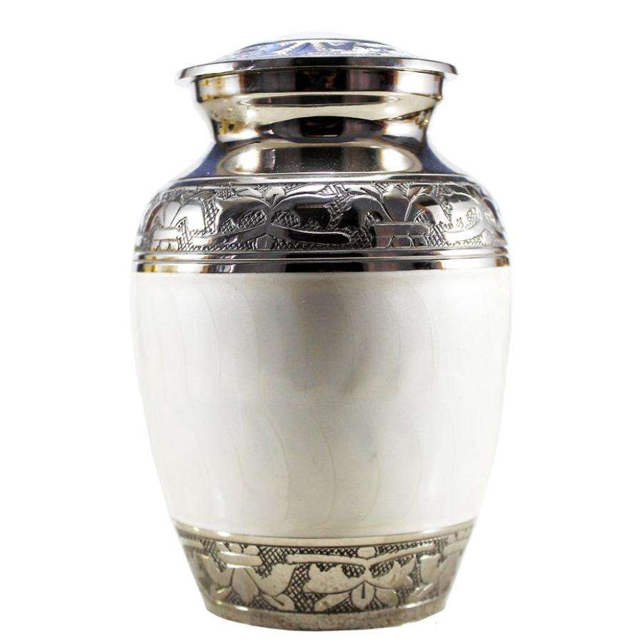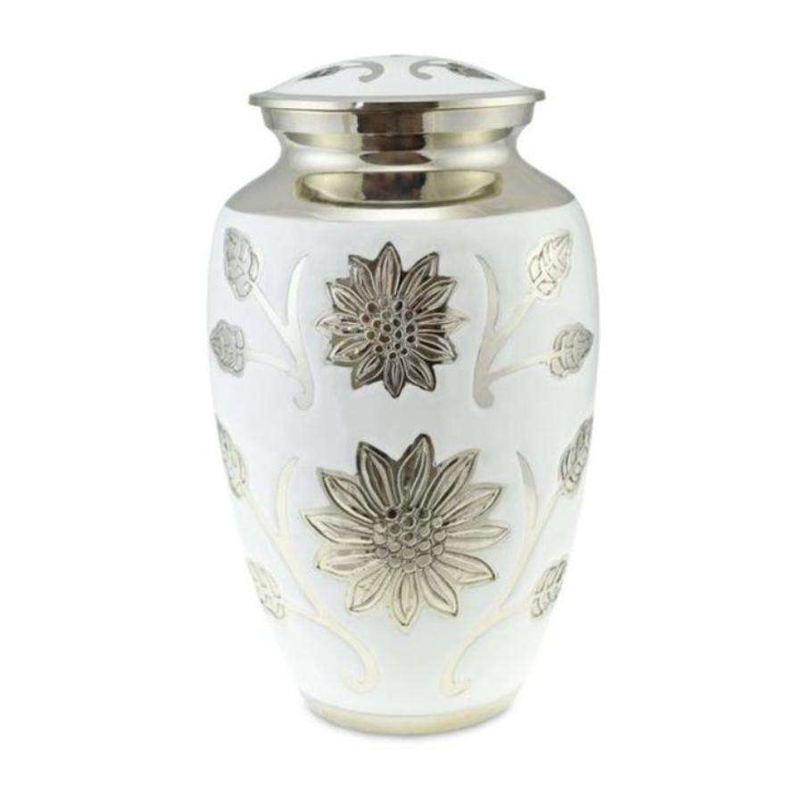 โกศเคลือบสีขาวสลักลายดอกไม้ โกศสำหรับผู้ใหญ่ สไตล์อเมริกัน ขนาดกลาง ราคาขายส่ง