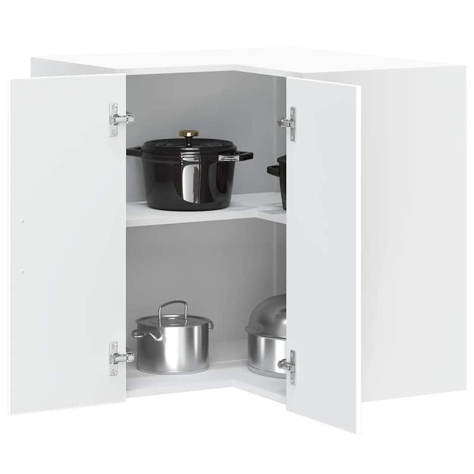 ตู้มุมครัวติดผนังไม้เอ็นจิเนียร์สีขาวขนาดกะทัดรัด
