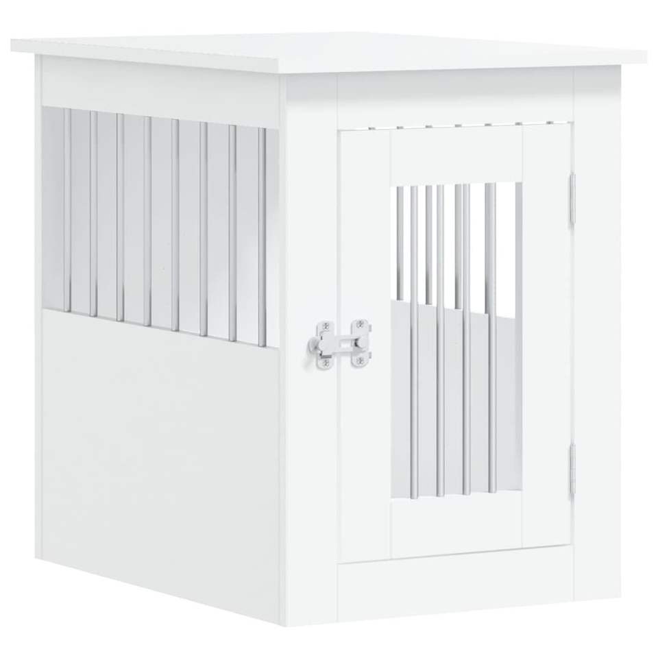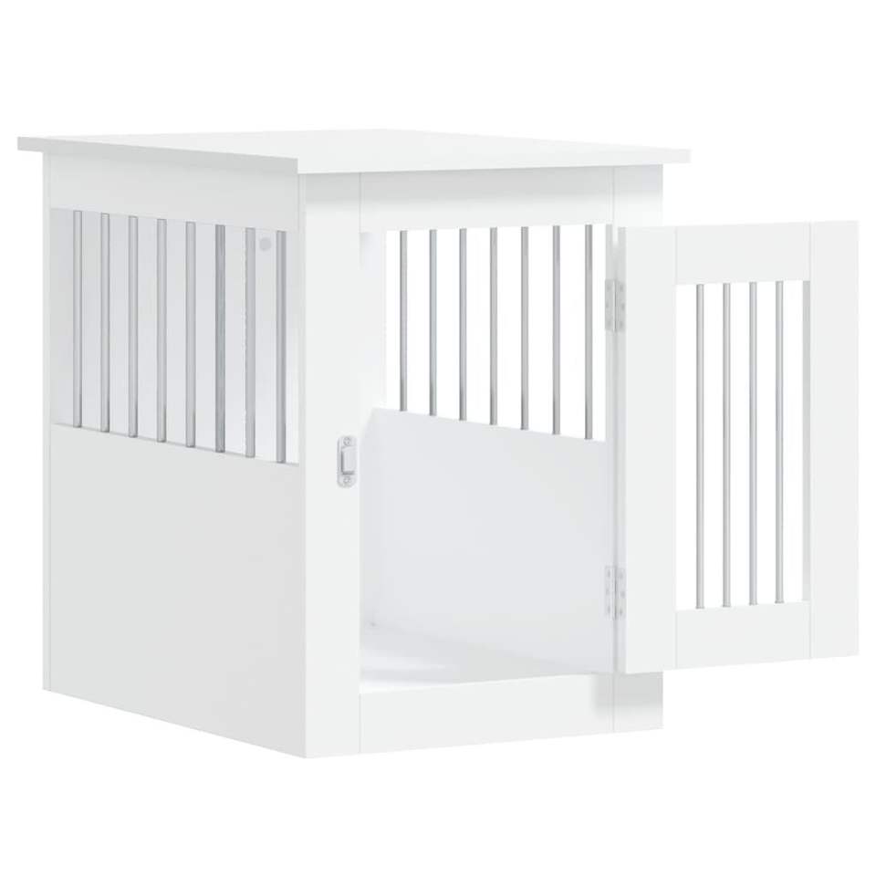 เฟอร์นิเจอร์กรงสุนัขเหล็กเคลือบไม้สีขาวสำหรับบ้านสัตว์เลี้ยงและเฟอร์นิเจอร์