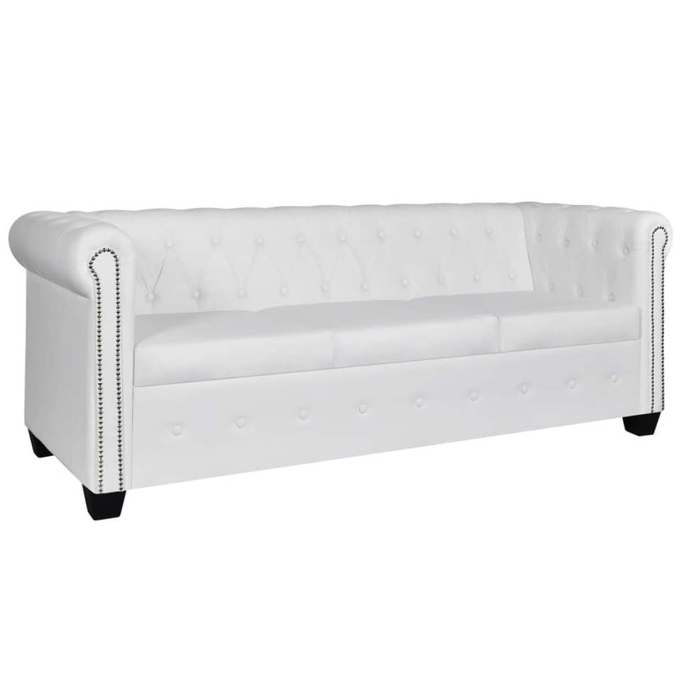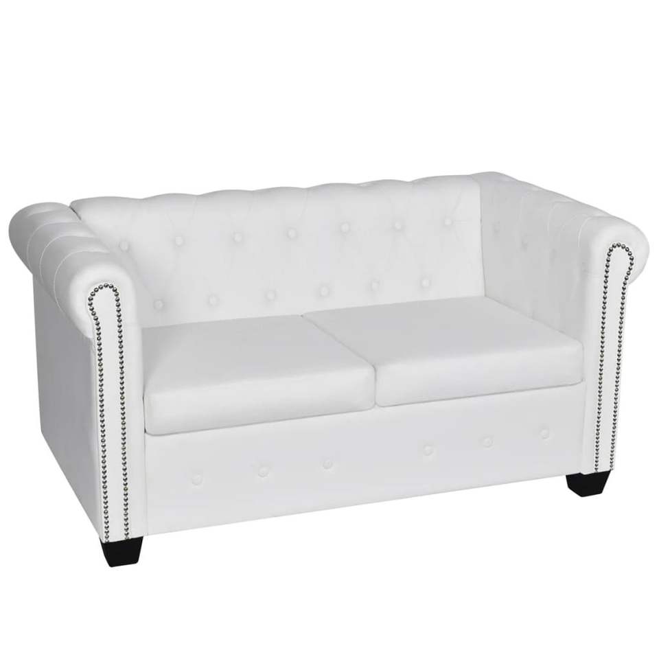 โซฟาเชสเตอร์ฟิลด์หนังเทียมสีขาว 2 และ 3 ที่นั่ง เฟอร์นิเจอร์ห้องนั่งเล่น