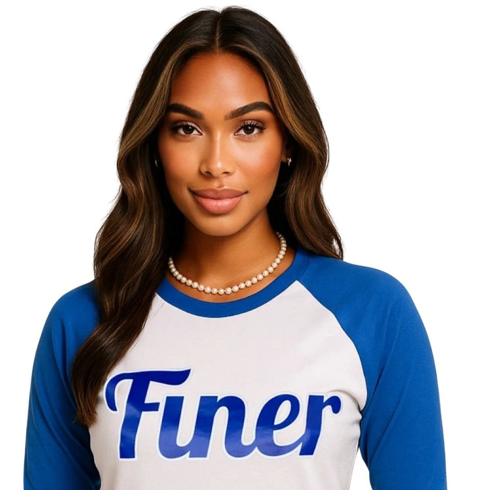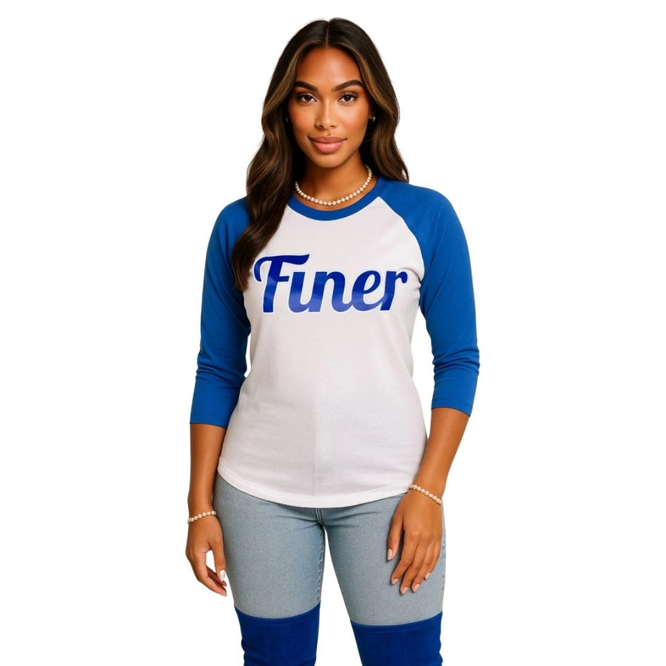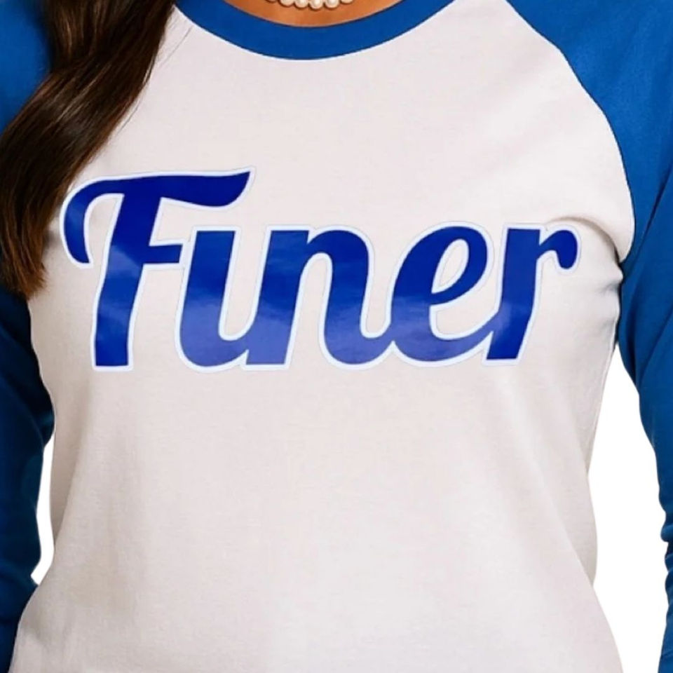 เสื้อยืดเบสบอลสีขาวแขนสีน้ำเงิน ชุดนักเรียนหญิง ผ้าฝ้าย สไตล์กรีก แฟชั่นลำลองสำหรับผู้หญิง ปักลาย
