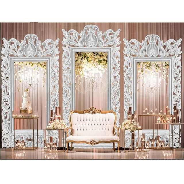 กรอบตกแต่งงานแต่งงานลายดอกไม้สีขาว วัสดุ FRP ดีไซน์ใหม่ล่าสุด ฉากหลังเวทีงานแต่งงานสุดพิเศษ สำหรับงานแต่งงานในโอไฮโอ