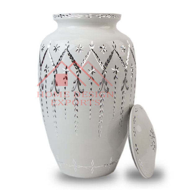 เถ้ากระดูกมนุษย์ทำจากโลหะอลูมิเนียมโกศ2025สำหรับผู้ใหญ่ดีไซน์แกะสลักด้วยมือสีขาว