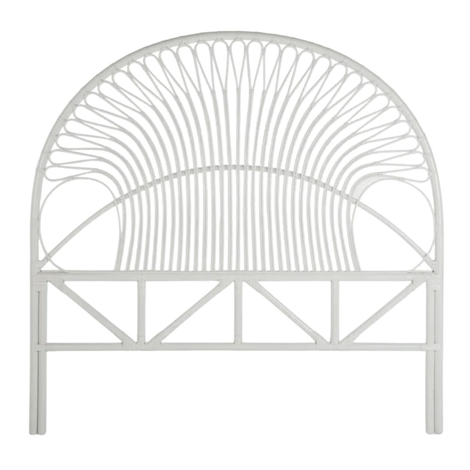 หัวเตียงหวายโค้งลายดอกไม้สีขาว