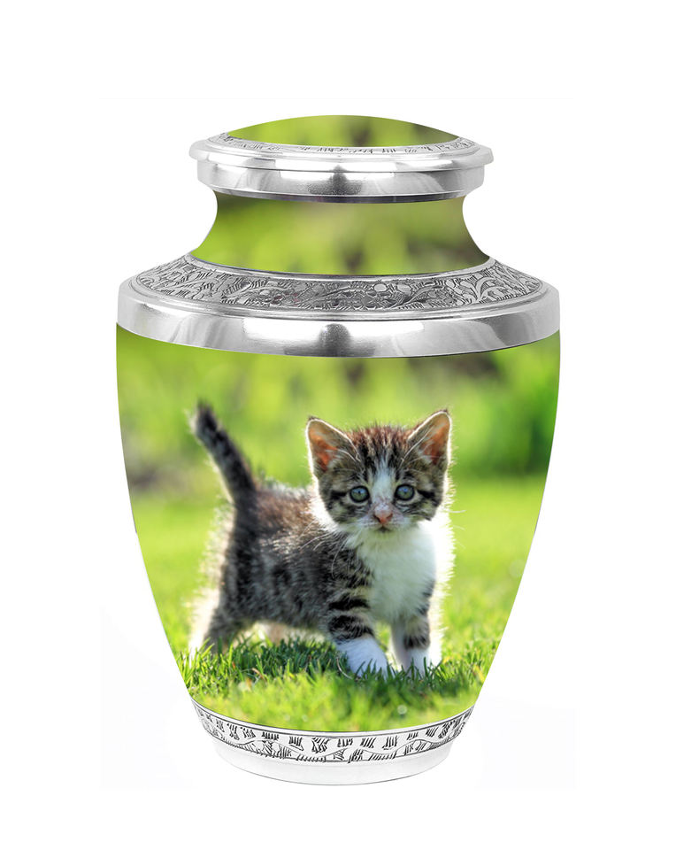 โกศใส่เถ้ากระดูกแมวลายแมวเหมียวขนปุยสีขาว