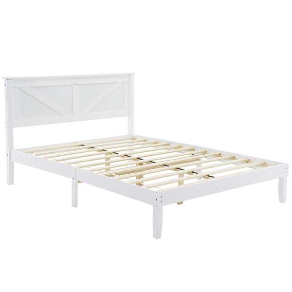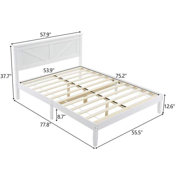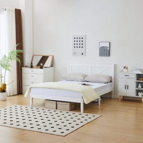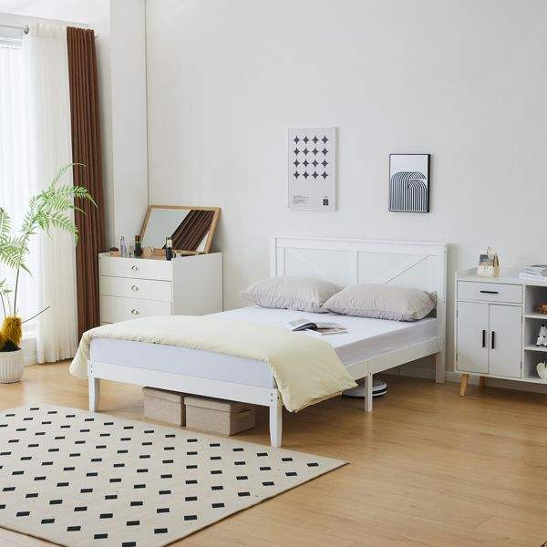 โครงเตียงไม้เนื้อแข็งสีขาวขนาดเต็มพร้อมหัวเตียง