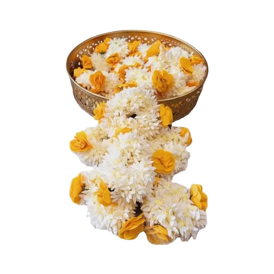 ยางรัดผมดอกไม้กัจราสีขาว กลิ่นมะลิ พร้อมดอกไม้สีขาวและดอกมะลิสีเหลือง สำหรับผู้หญิง