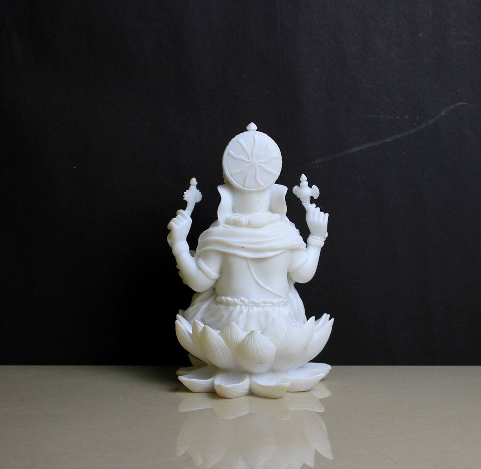 รูปปั้นพระพิฆเนศสีขาวทำจากเรซิ่น งานแฮนด์เมด ดีไซน์แบบดั้งเดิม ของตกแต่งบ้านสำหรับวางบนโต๊ะ ของขวัญวันดิวาลี