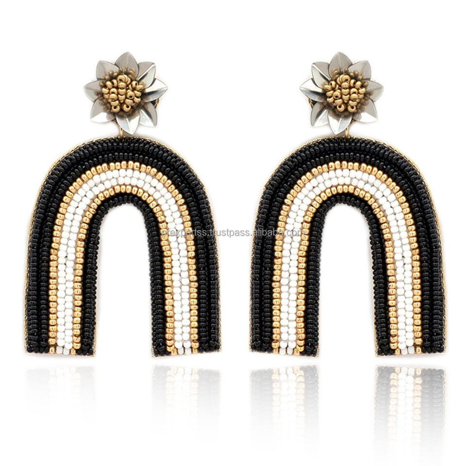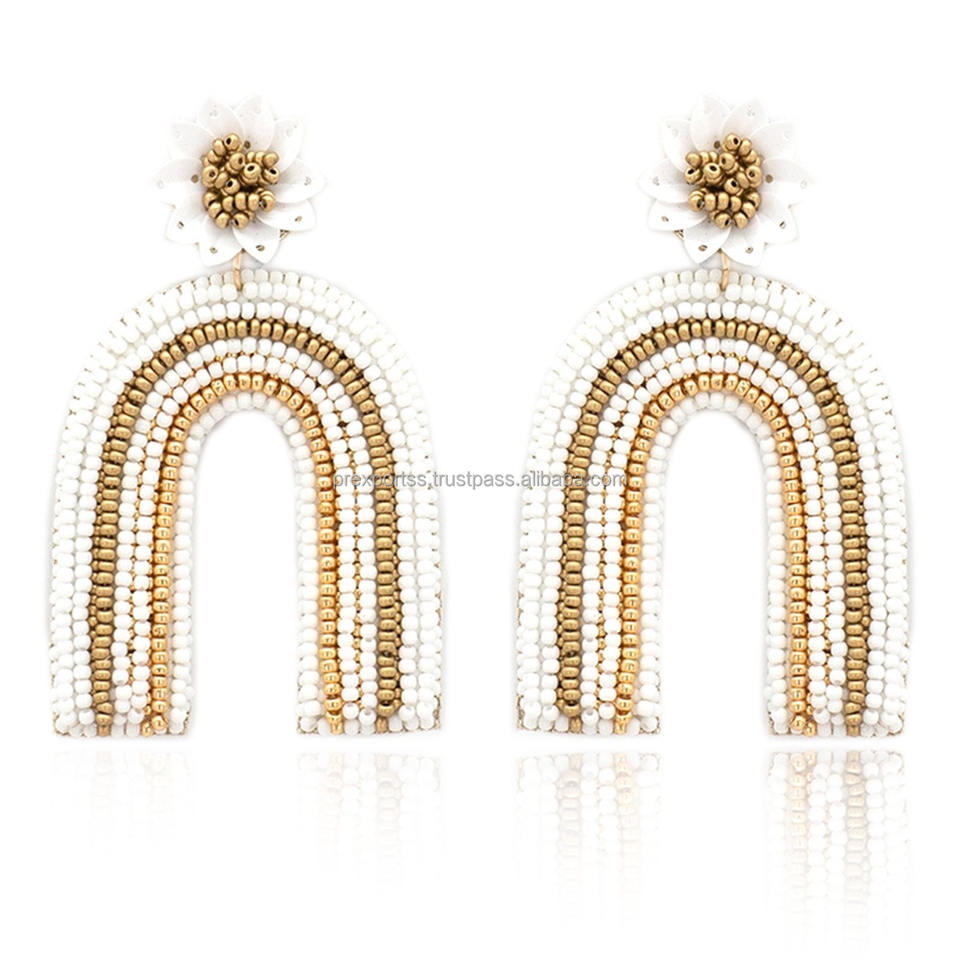 ต่างหูห่วงประดับลูกปัดสีขาวทอง งานแฮนด์เมด คริสตัล ไรน์สโตน น่ารัก ขนาดสั่งทำได้ สำหรับผู้หญิง สาวๆ ใส่ไปงานปาร์ตี้