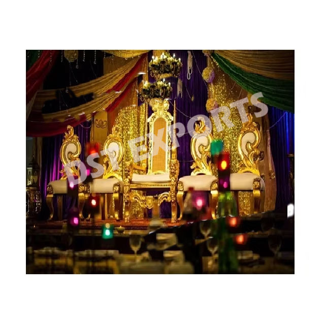 เก้าอี้คู่สีขาวทองสำหรับพิธีหมั้นเจ้าสาวเจ้าบ่าวเก้าอี้บัลลังก์คู่แต่งงานแฟนซีด้านหลังสูง