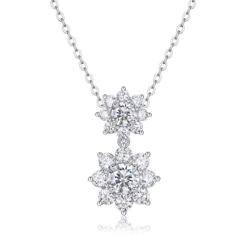 สร้อยคอจี้เพชรคลัสเตอร์สีขาวทอง – สร้อยคอทรงหยดน้ำรูปดอกไม้ทรงกลมเจียระไนแบบบริลเลียนท์ – เครื่องประดับเพชรสำหรับผู้หญิง