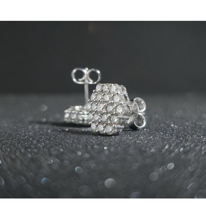ต่างหูเพชรทองคำขาว เงินแท้ 925 ประดับมอสซาไนต์ ดีไซน์เรียบหรู ระยิบระยับ เหมาะสำหรับผู้หญิง ใส่ได้ทุกวันและในโอกาสพิเศษ