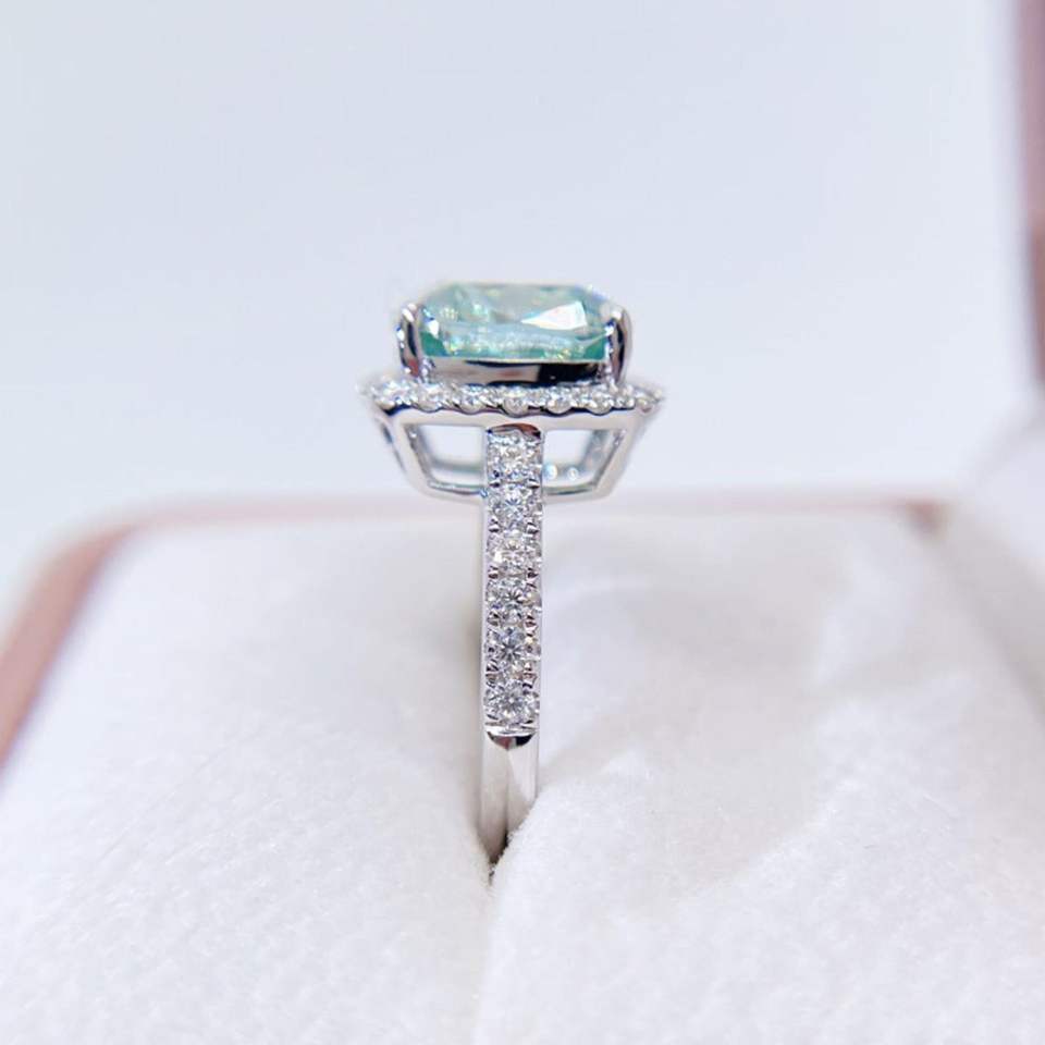 แหวนเพชรโมอิสสีฟ้าสไตล์สีขาวทอง