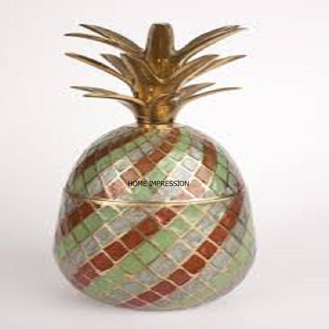 ถังแช่ไวน์โลหะลายสับปะรดสีขาวและสีทอง ดีไซน์เนอร์ไอซ์คูลเลอร์