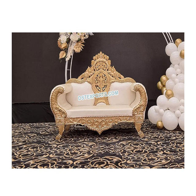 สีขาวสีทองแกะสลักงานแต่งงานออกแบบโซฟา Maharaja แต่งงานโซฟาออกแบบห้องดีลักซ์แต่งงานทองออกแบบบัลลังก์