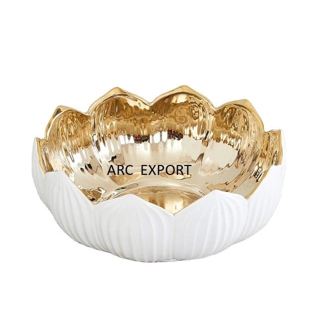 สีขาวและสีทองดอกไม้การออกแบบที่ไม่ซ้ำกันชามสไตล์แฟนซีและรูปแบบใหม่ที่ให้บริการชาม