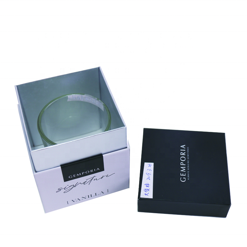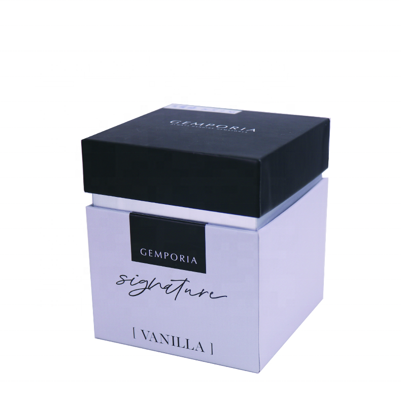 กล่องเทียนรีไซเคิลได้สีขาวหรูหรากระดาษแข็งชุดฉลากส่วนตัวเคลือบยูวีมันวาว/เคลือบด้านลายนูนของขวัญสี่เหลี่ยมผืนผ้า