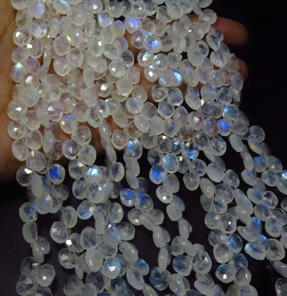 ลูกปัดหินหยกสีขาวขนาด7.5-8มม. ลูกปัดหินมูนสโตนสีรุ้งธรรมชาติ10สาระลูกปัดพลอยรูปหัวใจแบบหลวม