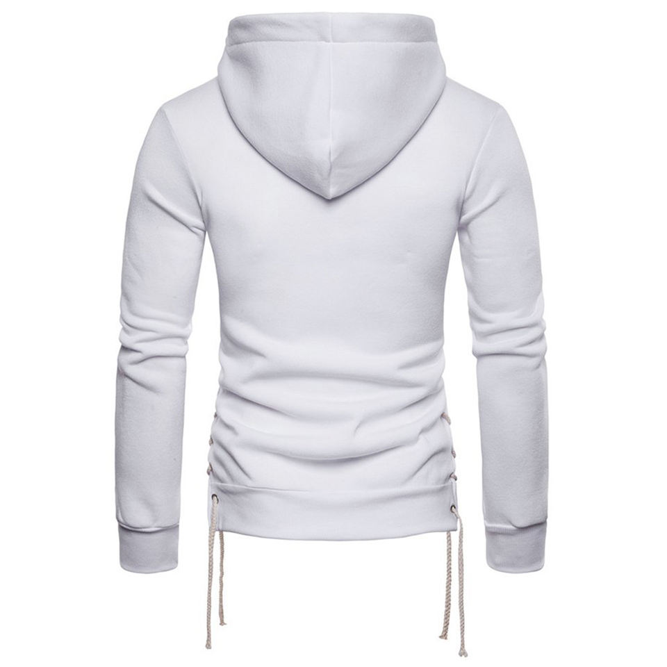 เสื้อสเวตเตอร์สวมหัวมีฮู้ดสีขาวสำหรับผู้ชายเสื้อมีฮู้ดแขนยาวทรงสลิมฟิตผ้าฟลีซแบบเย็บปะ