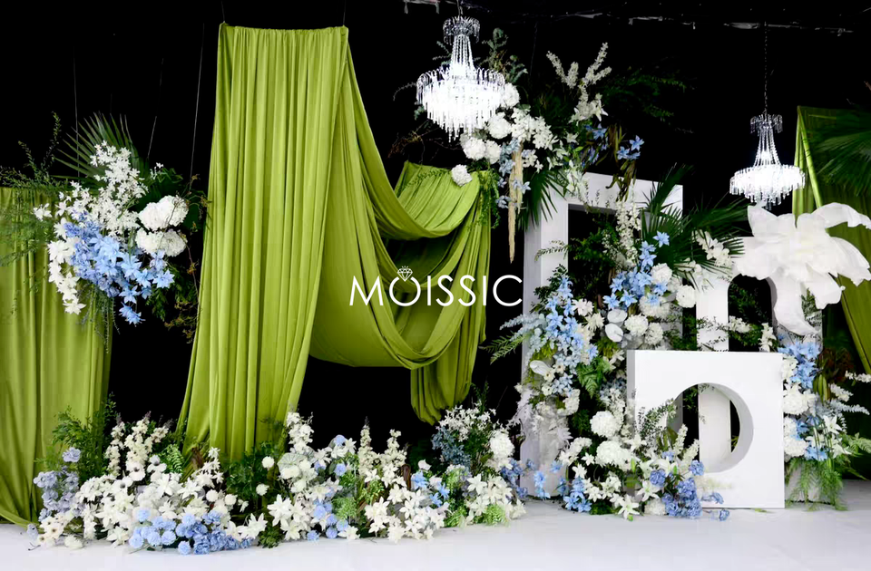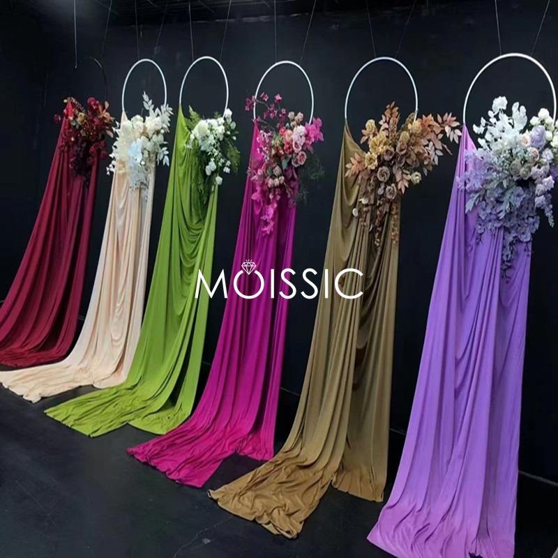 ผ้าม่านฉากหลังงานแต่งงานผ้าไหมสีขาวเนื้อเนียนหรูหรา ไม่ยับ สำหรับงานปาร์ตี้ งานเลี้ยงฉลองสมรส