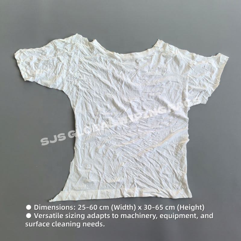 ผ้าเช็ดทำความสะอาดสีขาวแบบถัก ทำจากเสื้อยืดรีไซเคิล ผ้าเช็ดอุตสาหกรรม ผ้าเช็ดทำความสะอาดจากผ้าฝ้าย สำหรับทำความสะอาดอุปกรณ์เครื่องจักร