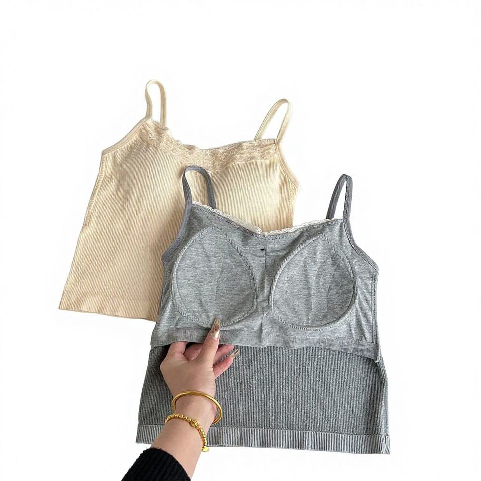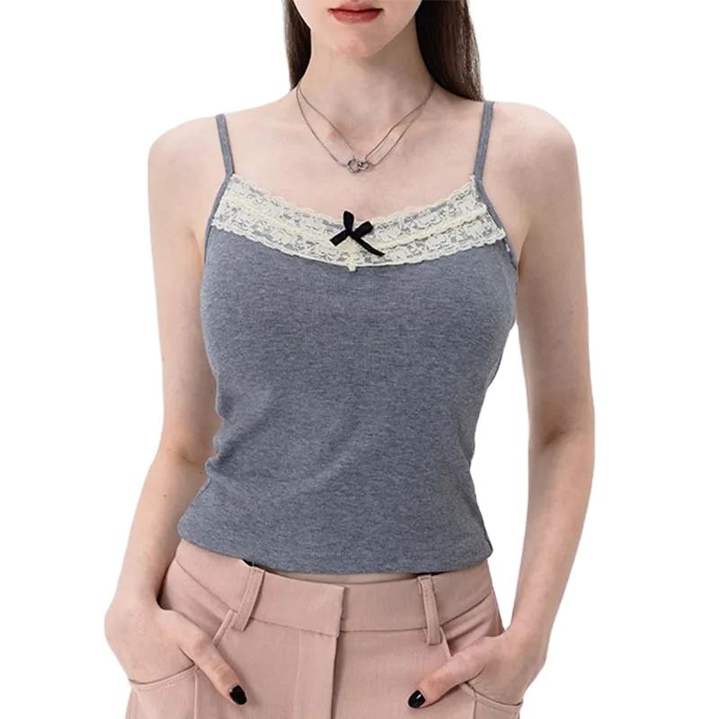 เสื้อกล้ามทรงเข้ารูปสไตล์เกาหลี สีขาว สำหรับผู้หญิง ระบายอากาศได้ดี ผลิตจากไนลอน 100% คอวี ลำลอง มีโลโก้ด้านหน้า แต่งลูกไม้ถักแบบเรียบ