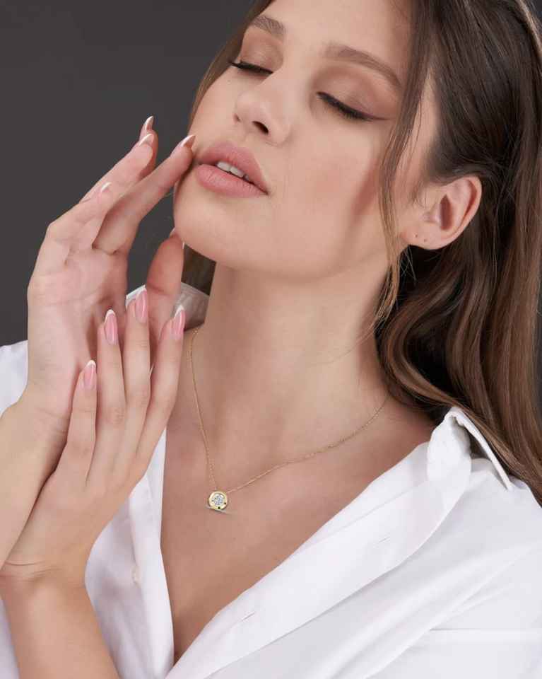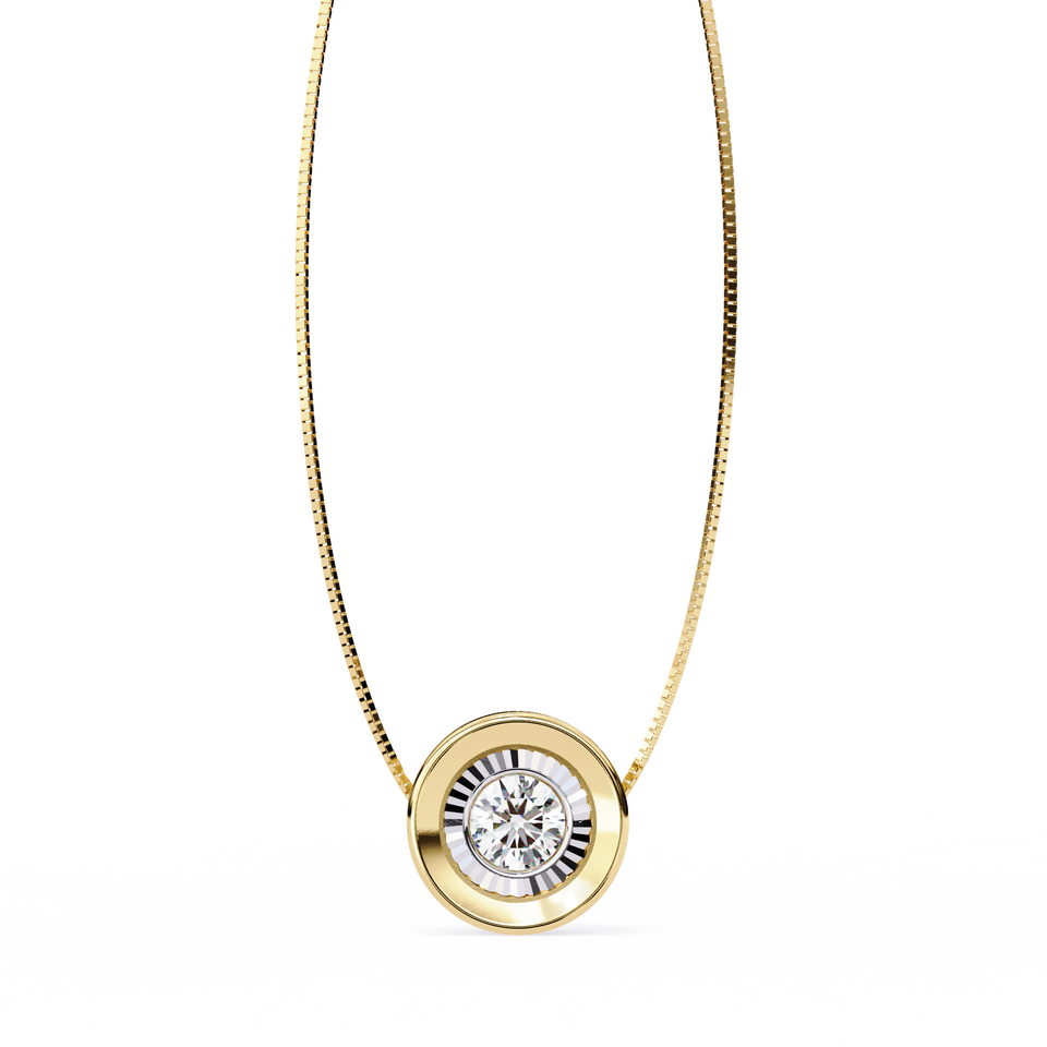 จี้เพชรโมอิสซาไนต์สีขาวทรงกลม เกรด E VS1 ได้รับการรับรองจาก IGI น้ำหนัก 0.25 กะรัต ตัวเรือนเงินสเตอร์ลิงชุบโรเดียม