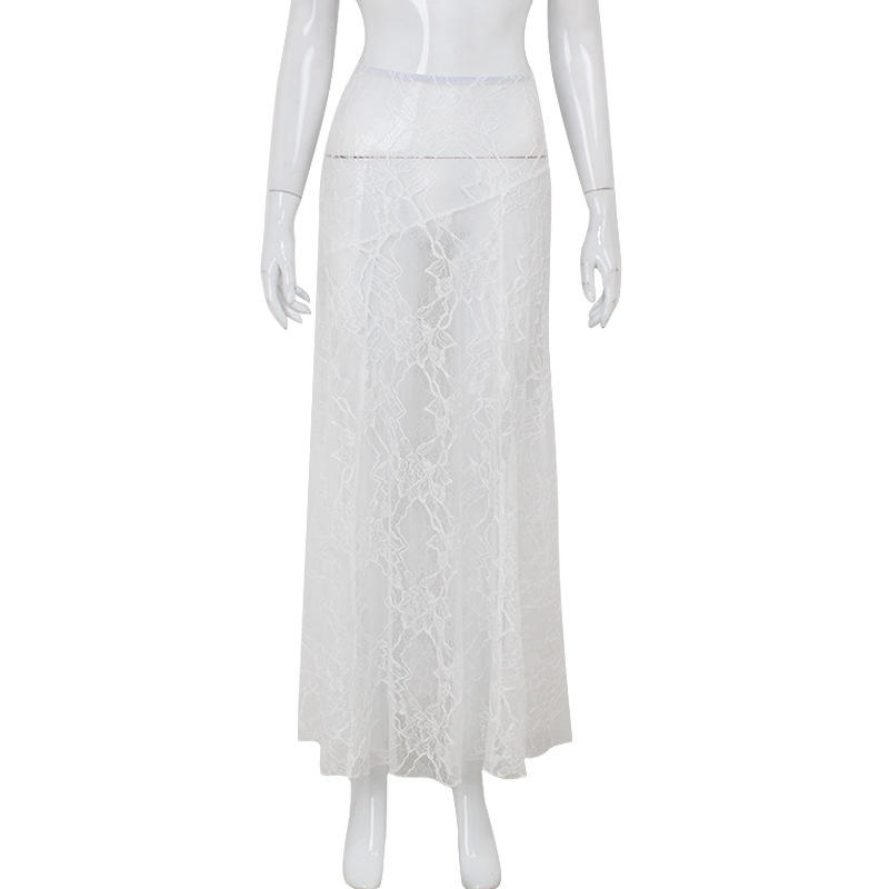กระโปรงแมกซี่ลูกไม้สีขาวสำหรับผู้หญิงกระโปรงคลุมบิกินี่ชายหาดผ้าโปร่งเซ็กซี่กระโปรงทรงหลวมเอวสูงแบบลำลองสำหรับฤดูร้อน2024วันหยุด