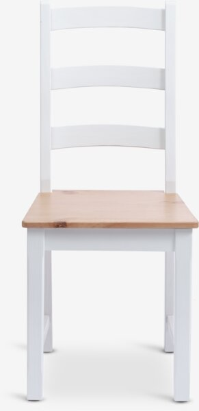 เก้าอี้รับประทานอาหารบันไดหลังสีขาวพร้อมที่นั่งไม้ธรรมชาติ