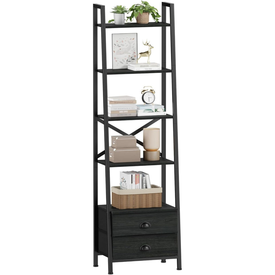 ชั้นวางของแบบมีบันไดสีขาวพร้อมลิ้นชัก ชั้นวางหนังสือแบบตั้งพื้นทันสมัย ทำจากไม้และโลหะ สำหรับจัดเก็บของในบ้าน สำนักงาน ห้องนั่งเล่น