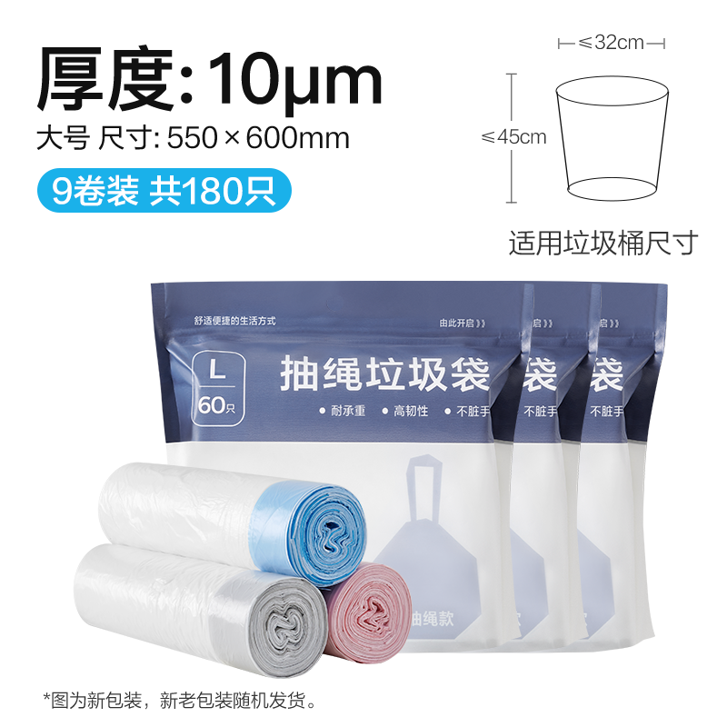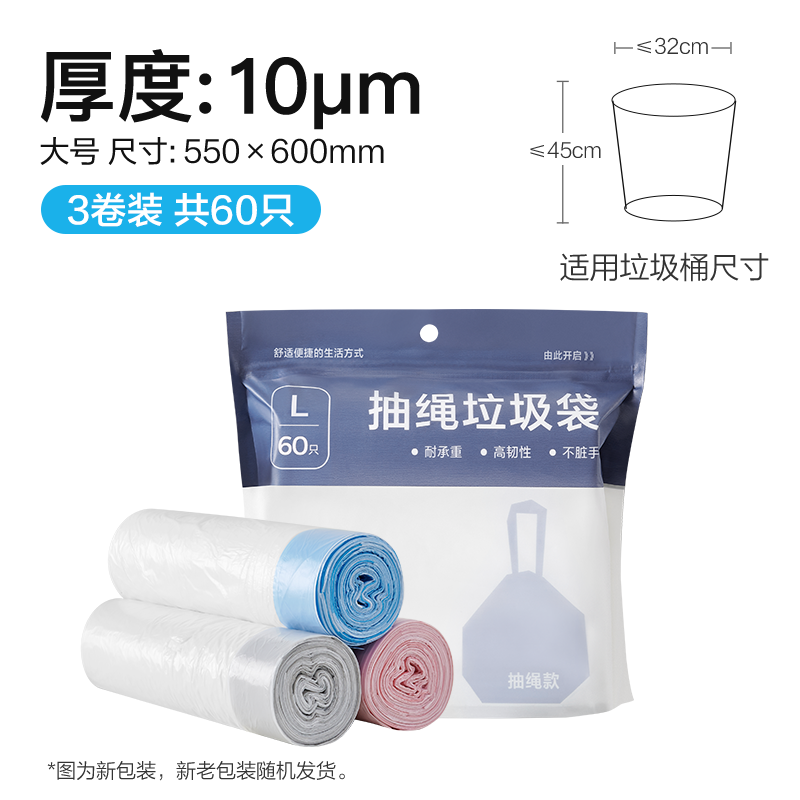 White Large Plastic Drawstring Trash Bag for Home Student Dorms Portable Trash Can Thickened Household Trash Bags for Kitchens