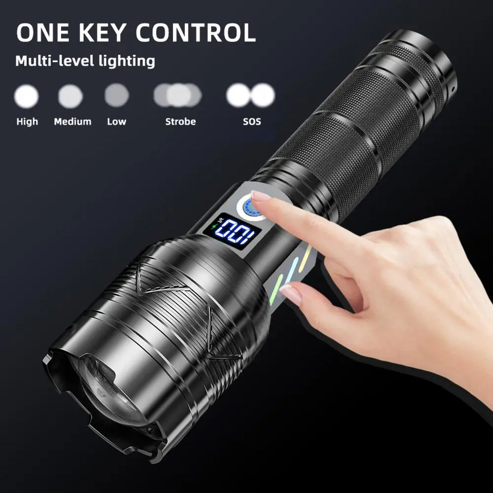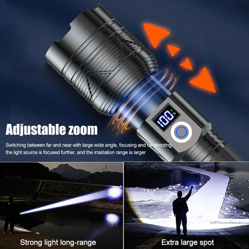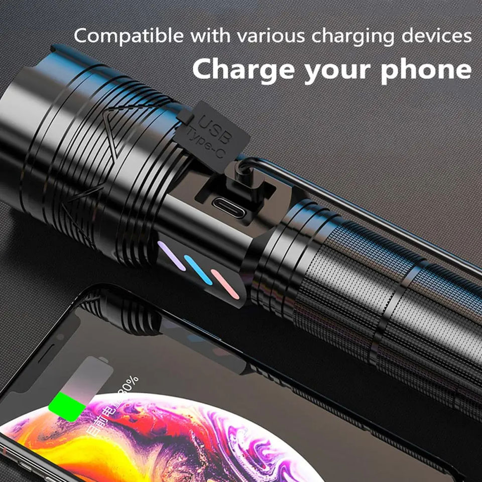 ไฟฉายเลเซอร์สีขาวทรงพลัง1500LM ยาว1000เมตร TYPE-C สปอตไลท์ตั้งแคมป์ซูมได้แบบชาร์จไฟได้