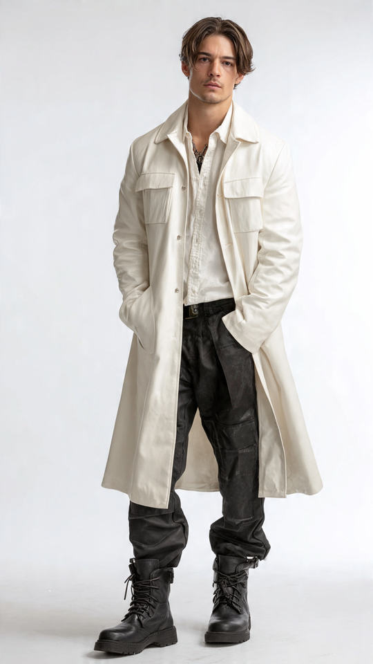 ชื่อผลิตภัณฑ์:เสื้อโค้ทยาวหนังแจ๊กเก็ตผู้ชาย