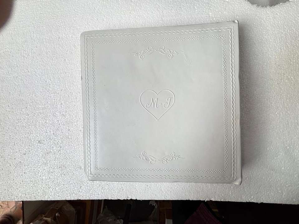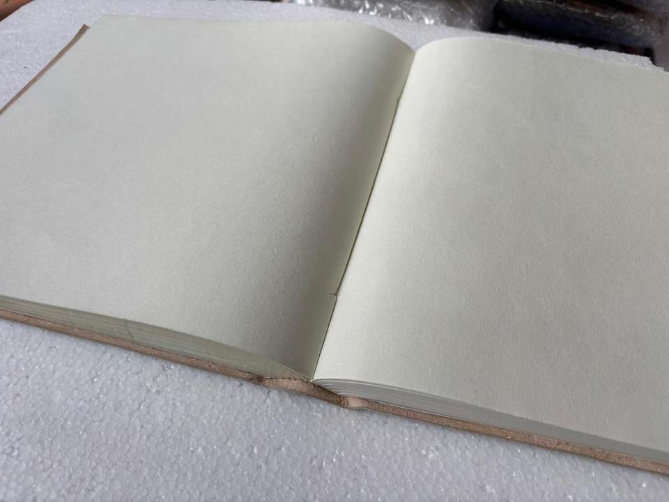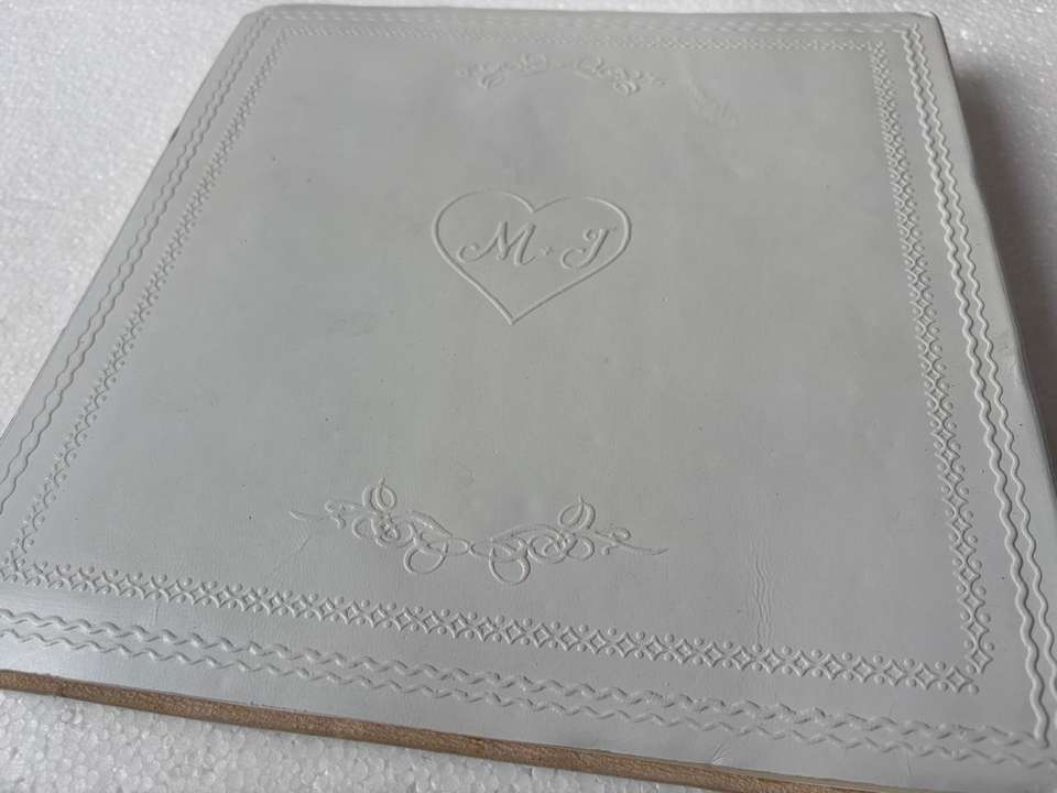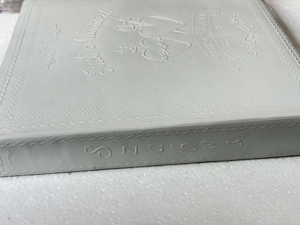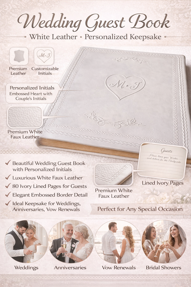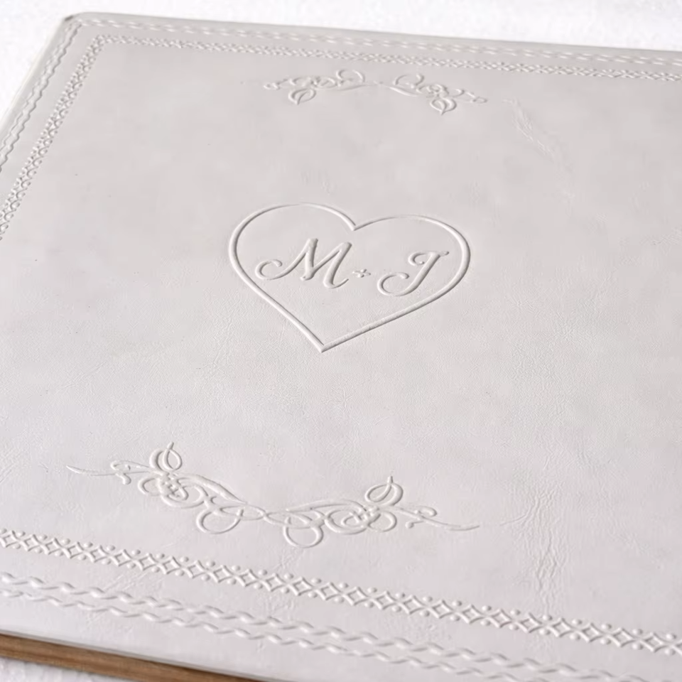 สมุดเยี่ยมงานแต่งงานปกหนังสีขาวรักษ์โลก ปั๊มนูนอักษรย่อส่วนตัว อัลบั้มเก็บความทรงจำ หน้ากระดาษมีเส้นสำหรับงานแต่งงาน