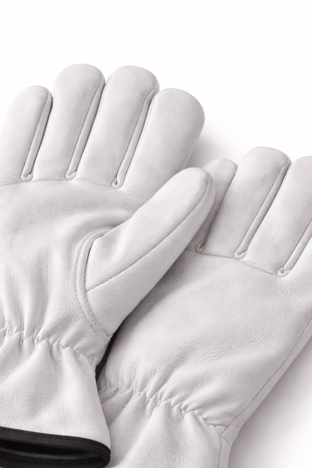 ถุงมือหนังสีขาวสำหรับงานอุตสาหกรรม พร้อมข้อมือยืดหยุ่น ผิวสัมผัสนุ่ม เหมาะสำหรับงานประกอบและปฏิบัติงานในโรงงาน