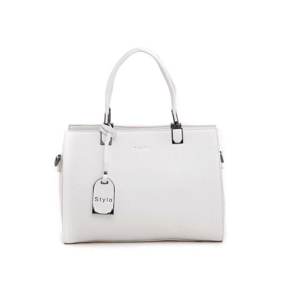 กระเป๋าถือหนัง PU แบบลำลองสีขาวหรูหรามีดีไซน์กระเป๋าสะพายข้างเรียบง่ายตกแต่งด้วยลวดลายตัวอักษร