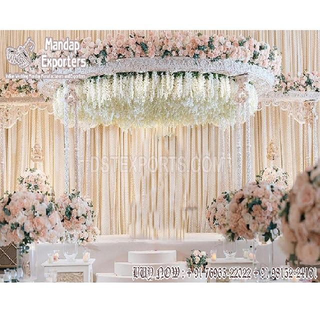 มณฑปแต่งงานสีขาวแบบเสาคู่ ดีไซน์หรูหราอลังการ ตกแต่งด้วยเสาคู่ ให้ความรู้สึกพิเศษสำหรับงานแต่งงานแบบอินเดียในมาเลเซีย