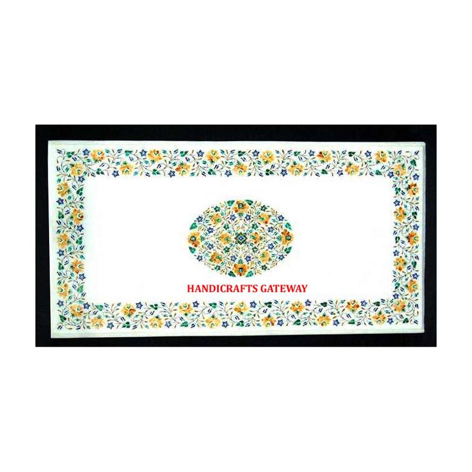 หินอ่อนสีขาวทรงสี่เหลี่ยมทำด้วยมือสุดสวยท็อปคลาสแบบฝังบนโต๊ะสำหรับงานออกแบบดอกไม้ประดับโต๊ะแบบอินเดีย
