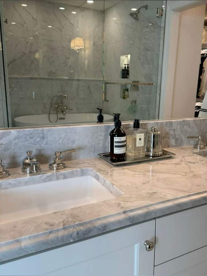 เคาน์เตอร์หินอ่อนสีขาวที่กำหนดเองสำหรับห้องครัวและห้องน้ำ Carrara calacatta statuario และชั้นวางของเพิ่มเติมทำจากหินอ่อน