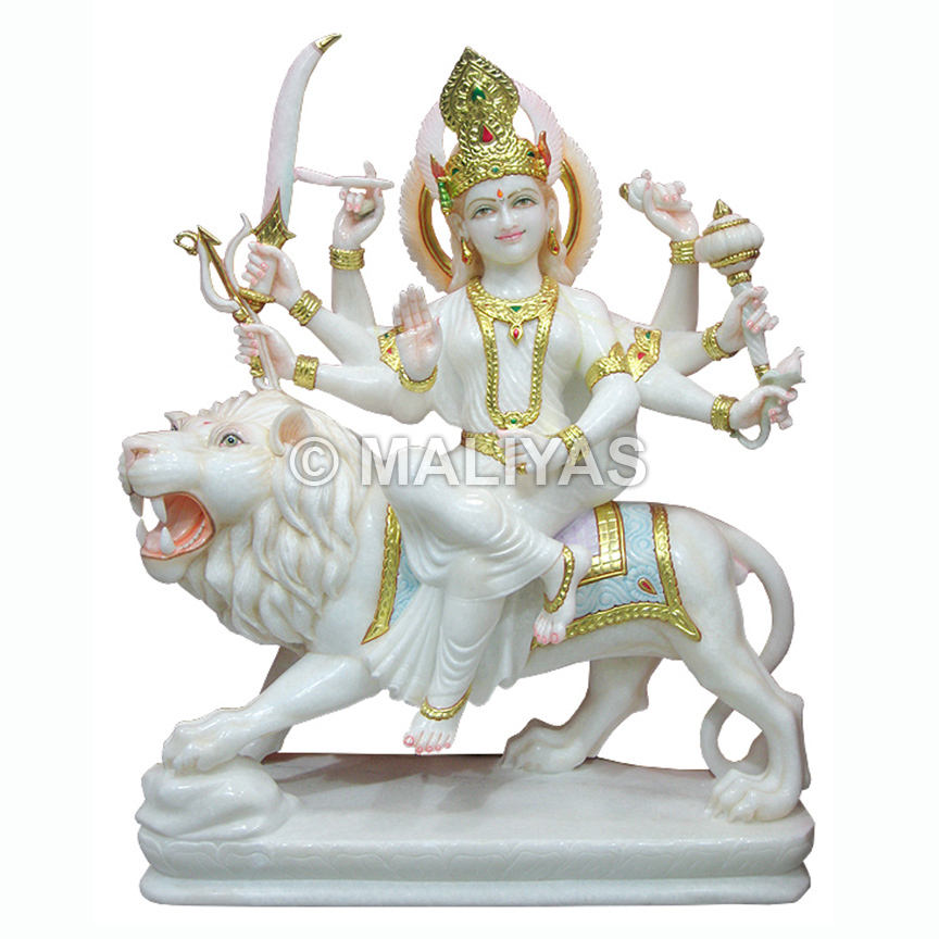 รูปปั้นพระแม่ดูร์กาทำจากหินอ่อนสีขาว | ผู้ผลิตหินอ่อนรูปปั้นดูร์กามาตะระดับพรีเมียม – มาลิยาส